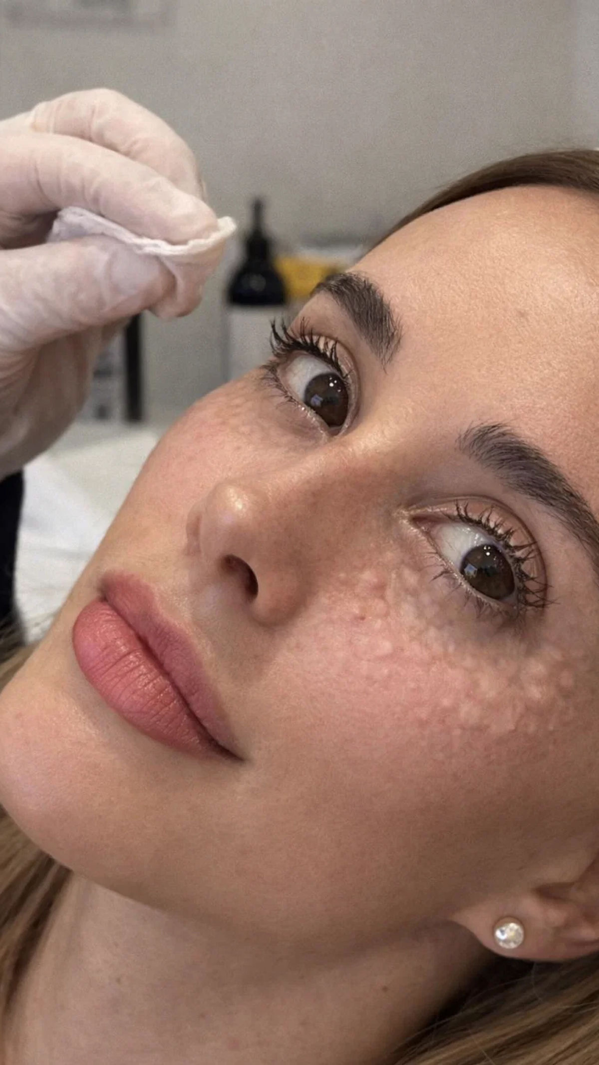 Mild redness, small bumps, or sensitivity may be visible immediately after treatment and typically settle within 24 to 72 hours.