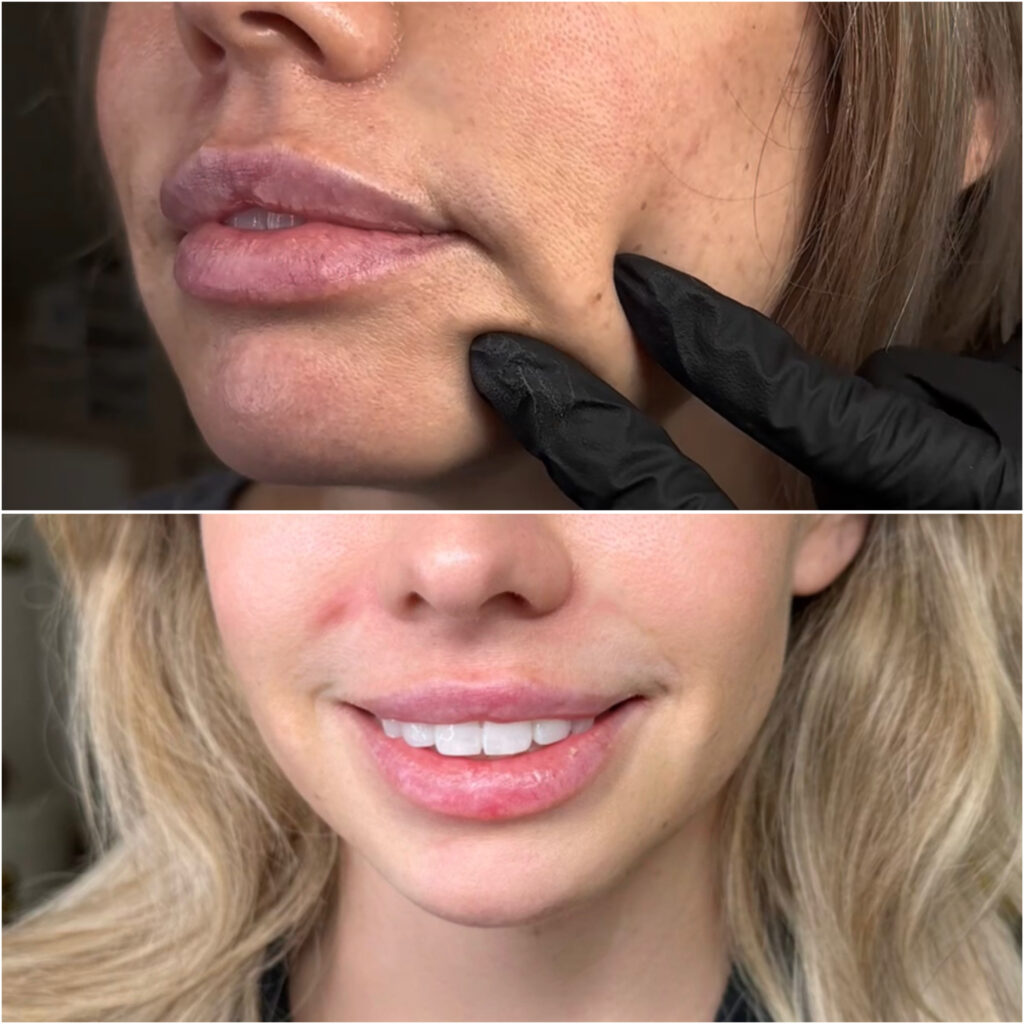 If appropriate, dermal filler is carefully injected into targeted areas to restore support and soften lines around the mouth. In some cases, treating surrounding areas may also be recommended to achieve the most balanced result.